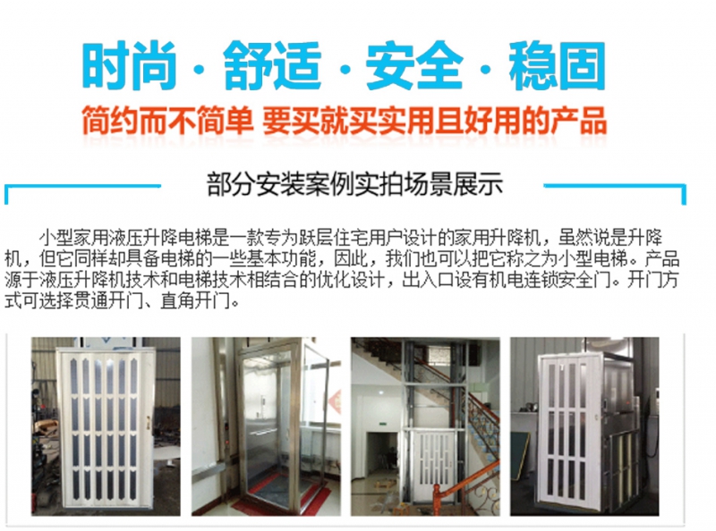 家用电梯属于定制类产品,因为规格不一,无法标注准确价格,需要根据您的实际使用要求定制来核算相应的价格。页面的价格非实际成交价格,具体请电话咨询(包括升降高度,停靠层数,载重量和平台大小以及外观等)