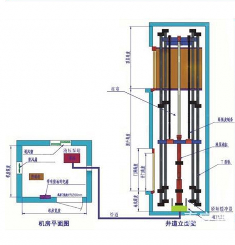 另外,手动泵还能在系统发生故障时,操纵手动泵打出高压油使轿厢上升到最近的层楼。