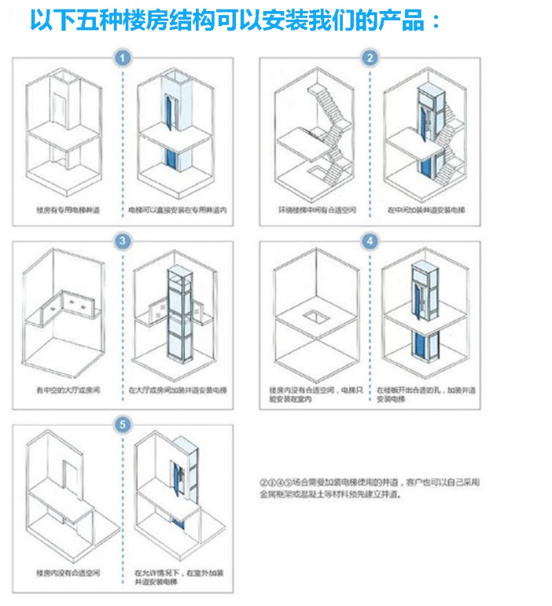 产品具有占地面小型化而轿厢内乘坐面积化的设计优势。