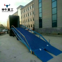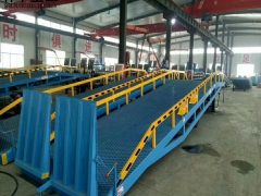 移动登车桥式与叉车配合使用的货物装卸专用辅助设备,用于现场无装卸货平台或需要流动装卸货物的场所。它相当于一个移动的钢结构斜坡,叉车同时能直接驶入卡车车厢内部进行批量装卸作业。产品采用人工液压动力,不需接动力电源。只需单人操作,即可实现货物的安全快速装卸。它可使企业减少大量劳动力,成倍提高装卸作业效率,加快货物流通速度,获取更大的经济效益。